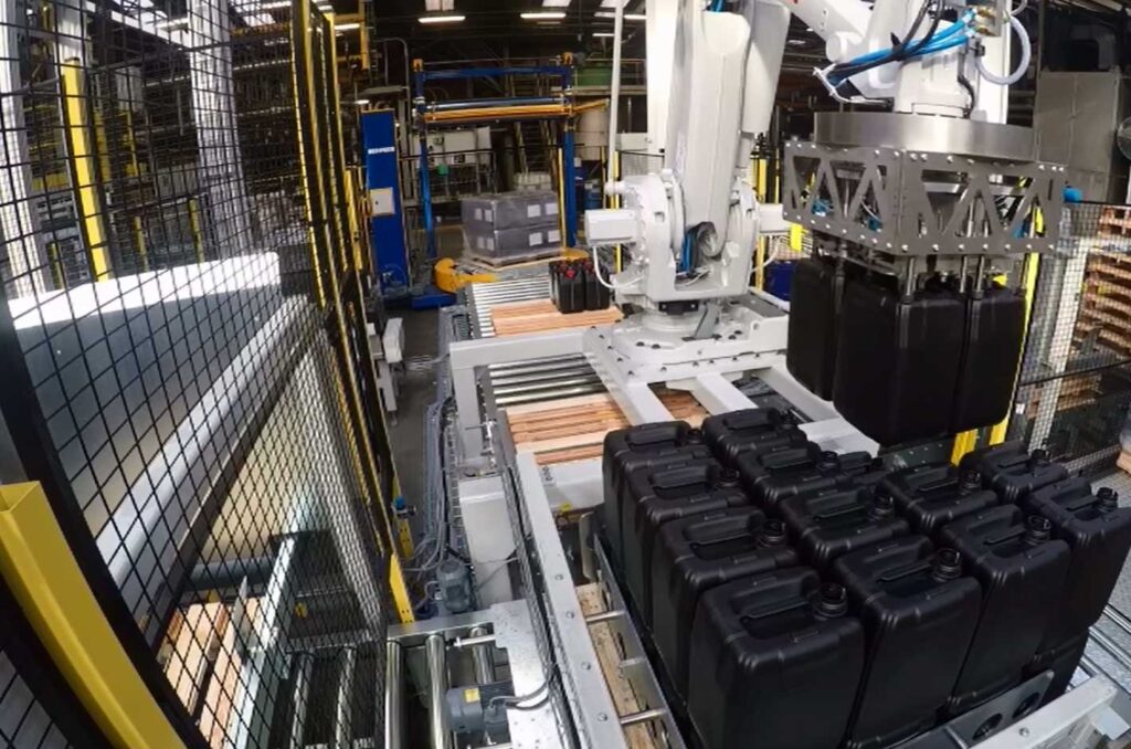 NEWS! Intelligente Roboter-Palettierzelle für Kanister mit ABB IRB660 Industrieroboter