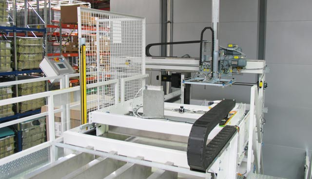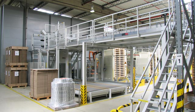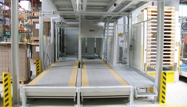 • Automatische Leerpalettenzuführung über bauseitige Palettenspeicher oder integriertes automatisch verstellbares Palettenmagazin
