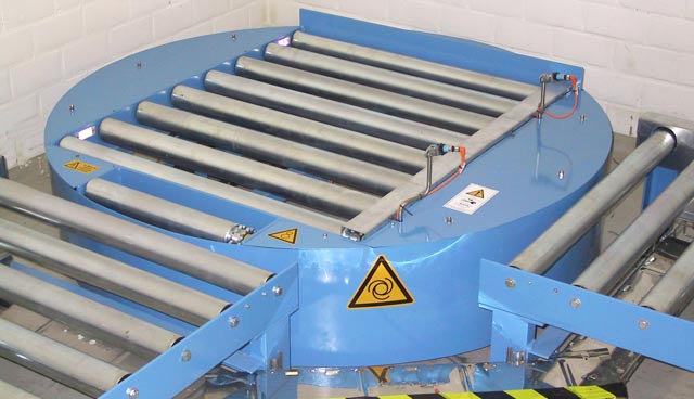 Unsere Drehtische und Drehförderer sind eine platzsparende Lösung, wenn Paletten, Kartons, Säcke uvm. „um die Ecke“ gebracht oder auf verschiedene Förderstrecken verteilt werden sollen.