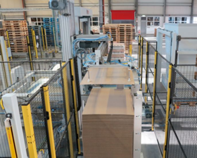 Bei einer effizienten Palettiertechnik ist das Handling von Zwischenlagen innerhalb der Palettieranlage von großer Bedeutung. Das kompakte EUROline Zwischenlagenaggregat ZWL mit Servoantrieben bietet eine schnellstmögliche Versorgung der Palettierung mit Zwischenlagen in verschiedenster Ausführung. Gleichzeitig kann dabei Zwischenlagenstapel bis zu 1800mm Höhe in das Magazin aufgegeben werden, womit ein häufiges Nachfüllen des Zwischenlagenvorrats entfällt.
